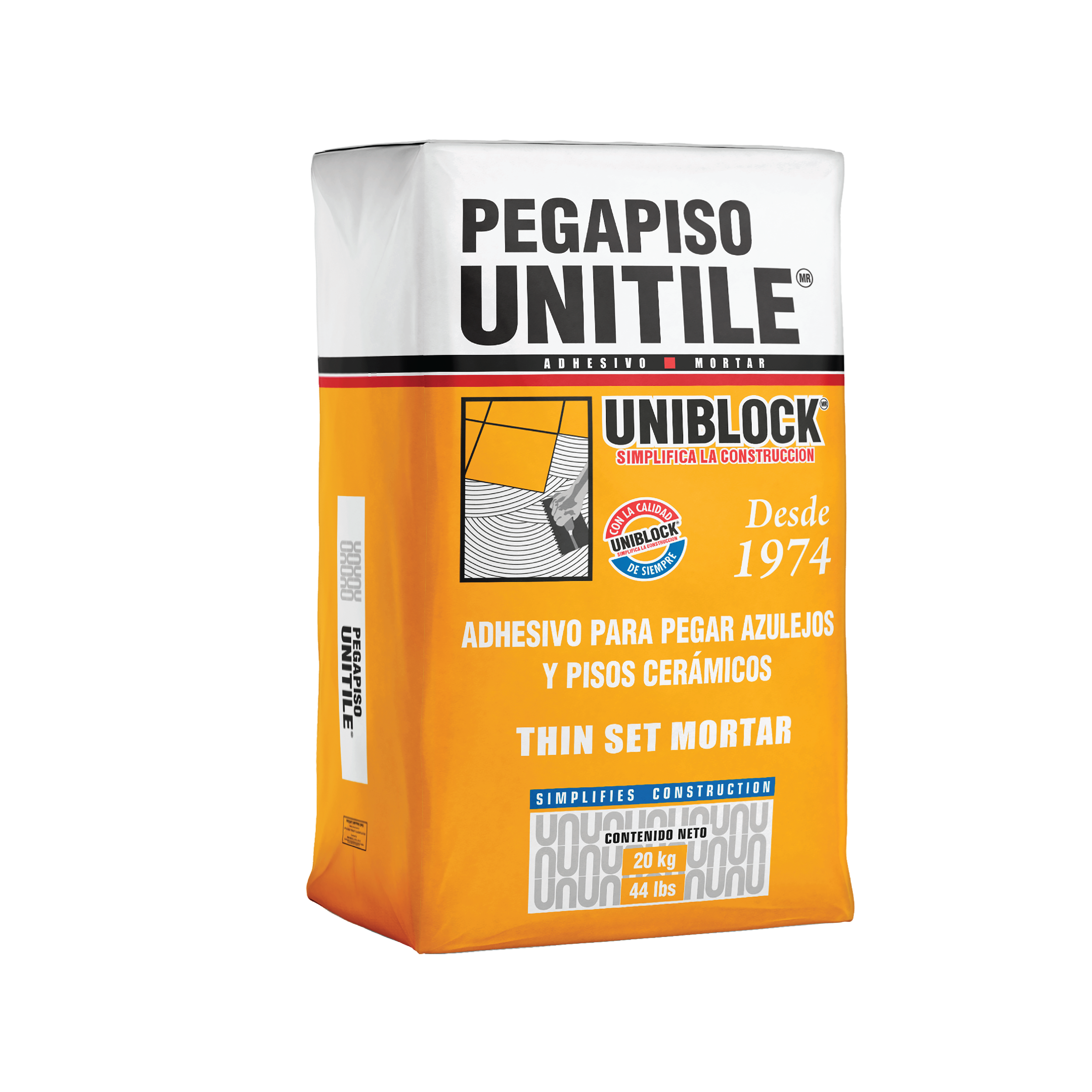 UNITILE UNIBLOCK es un adhesivo a base de cemento Portland para la instalación de azulejo y loseta cerámica de alta y media absorción de humedad.