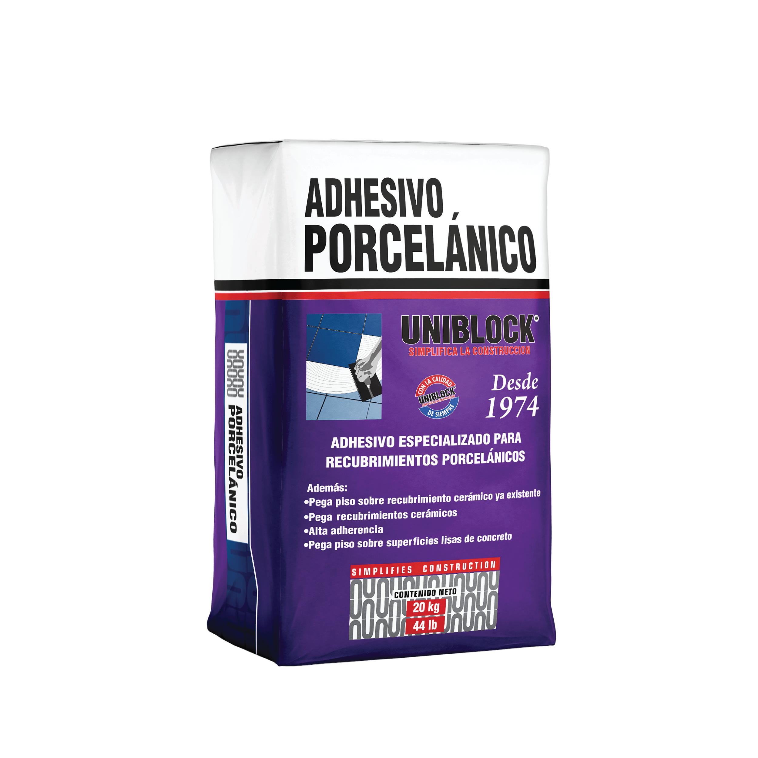 Adhesivo ideal para porcelanatos. Está fabricado a base de cemento Portland y polímeros de alta adherencia.